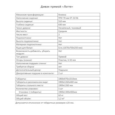 Диван Латте (Аквилон) продается в интернет-магазине mebel-online-saransk.ru по цене 28 547 руб. Есть доставка по Саранску и Республике Мордовия. Возможность подъема на этаж и сборки уточняйте у менеджера по телефону 8(800)505-27-11.