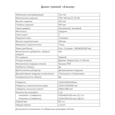 Диван Алькор (Аквилон) продается в интернет-магазине mebel-online-saransk.ru по цене 63 963 руб. Есть доставка по Саранску и Республике Мордовия. Возможность подъема на этаж и сборки уточняйте у менеджера по телефону 8(800)505-27-11.
