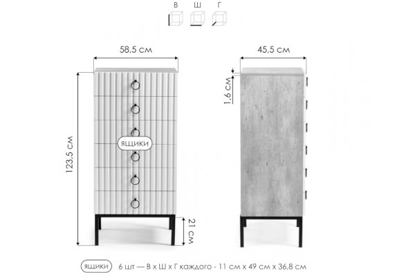 | Число ящиков | 6 |